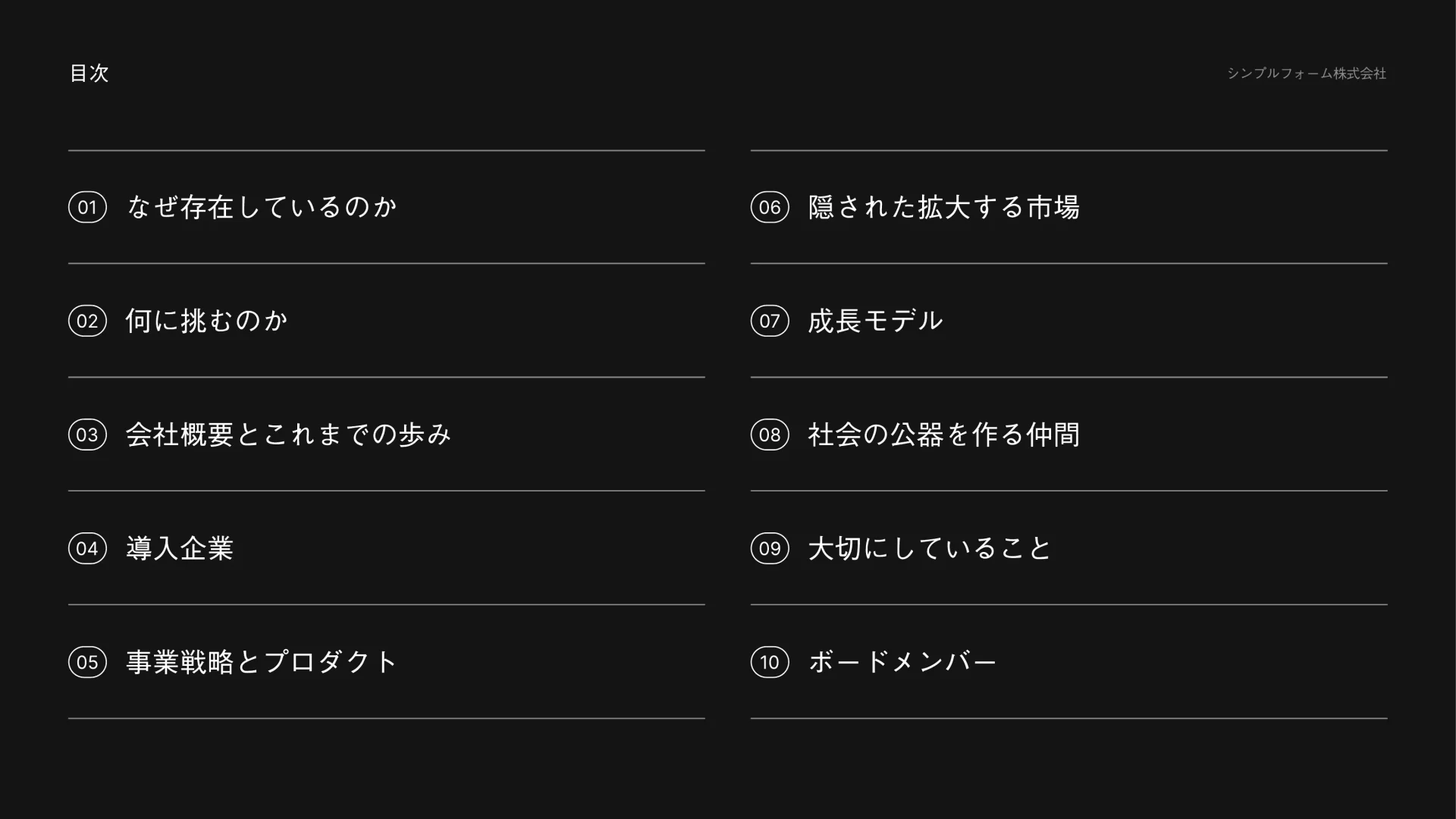 Sales Marker 会社紹介資料 会社概要のスライドデザイン 2026 3/07 Sales Marker オフィス写真 会社概要 会社紹介資料 Sales Marker オフィス写真 会社概要 会社紹介資料 引用元:https://speakerdeck.com/salesmarker/culturebook Sales Marker オフィス写真 会社概要 会社紹介資料 Sales Marker オフィス写真 会社概要 会社紹介資料 Sales Marker 会社紹介資料 中表紙のスライドデザイン Sales Marker 会社紹介資料 人物写真のスライドデザイン 関連記事 株式会社スマートラウンド 会社紹介資料 – CompanyDeck ニーズ・課題のスライドデザイン SimpleForm 会社紹介資料 目次のスライドデザイン アルゴマティック・ワークス・カンパニー・デッキ サービスの特徴のスライドデザイン 株式会社スマートラウンド 会社紹介資料 – CompanyDeck ニーズ・課題のスライドデザイン アルゴマティック・ワークス・カンパニー・デッキ サービス概要のスライドデザイン SimpleForm 会社紹介資料 表紙のスライドデザイン QuackShift 会社紹介資料 会社概要のスライドデザイン アルゴマティック・ワークス・カンパニー・デッキ サービス概要のスライドデザイン 株式会社スマートラウンド 会社紹介資料 – CompanyDeck ニーズ・課題のスライドデザイン HA-LU Inc.|カンパニーデック – 会社資料 WE ARE HIRINGのスライドデザイン 株式会社スマートラウンド 会社紹介資料 – CompanyDeck 中表紙のスライドデザイン HA-LU Inc.|カンパニーデック – 会社資料 よくある質問のスライドデザイン アルゴマティック・ワークス・カンパニー・デッキ フローのスライドデザイン HA-LU Inc.|カンパニーデック – 会社資料 選考フローのスライドデザイン 株式会社スマートラウンド 会社紹介資料 – CompanyDeck 目次のスライドデザイン アルゴマティック・ワークス・カンパニー・デッキ サービス概要のスライドデザイン 株式会社スマートラウンド 会社紹介資料 – CompanyDeck メンバーのスライドデザイン アルゴマティック・ワークス・カンパニー・デッキ プロダクト紹介のスライドデザイン HA-LU Inc.|カンパニーデック – 会社資料 メッセージのスライドデザイン アルゴマティック・ワークス・カンパニー・デッキ サービス概要のスライドデザイン 株式会社スマートラウンド 会社紹介資料 – CompanyDeck ミッション・ビジョンのスライドデザイン HA-LU Inc.|カンパニーデック – 会社資料 評価制度のスライドデザイン Company Profile WE ARE HIRINGのスライドデザイン kubell会社説明資料 目次のスライドデザイン 2025年11月期(FYE2025) 通期決算説明資料 会社概要のスライドデザイン kubell会社説明資料 市場規模のスライドデザイン 株式会社スマートラウンド 会社紹介資料 – CompanyDeck 表紙のスライドデザイン kubell会社説明資料 ポジショニングマップのスライドデザイン kubell会社説明資料 市場規模のスライドデザイン kubell会社説明資料 サービス概要のスライドデザイン kubell会社説明資料 沿革のスライドデザイン kubell会社説明資料 ミッション・ビジョンのスライドデザイン kubell会社説明資料 中表紙のスライドデザイン kubell会社説明資料 ソリューションのスライドデザイン HA-LU Inc.|カンパニーデック – 会社資料 年間行事のスライドデザイン kubell会社説明資料 サービス概要のスライドデザイン kubell会社説明資料 ミッション・ビジョンのスライドデザイン kubell会社説明資料 ミッション・ビジョンのスライドデザイン kubell会社説明資料 ポジショニングマップのスライドデザイン kubell会社説明資料 中期経営計画のスライドデザイン アルゴマティック・ワークス・カンパニー・デッキ ミッション・ビジョンのスライドデザイン Company Profile 選考フローのスライドデザイン kubell会社説明資料 表紙のスライドデザイン kubell会社説明資料 プロダクト紹介のスライドデザイン kubell会社説明資料 プロダクトビジョンのスライドデザイン kubell会社説明資料 ニーズ・課題のスライドデザイン kubell会社説明資料 プロダクト紹介のスライドデザイン kubell会社説明資料 会社概要のスライドデザイン kubell会社説明資料 ニーズ・課題のスライドデザイン kubell会社説明資料 強みのスライドデザイン